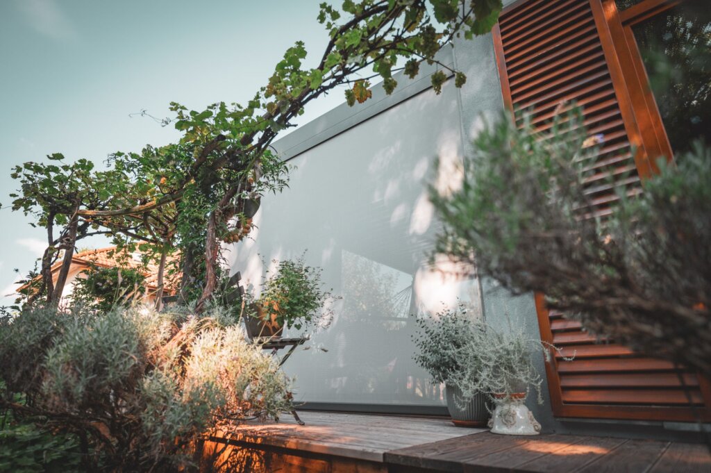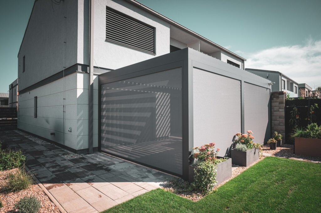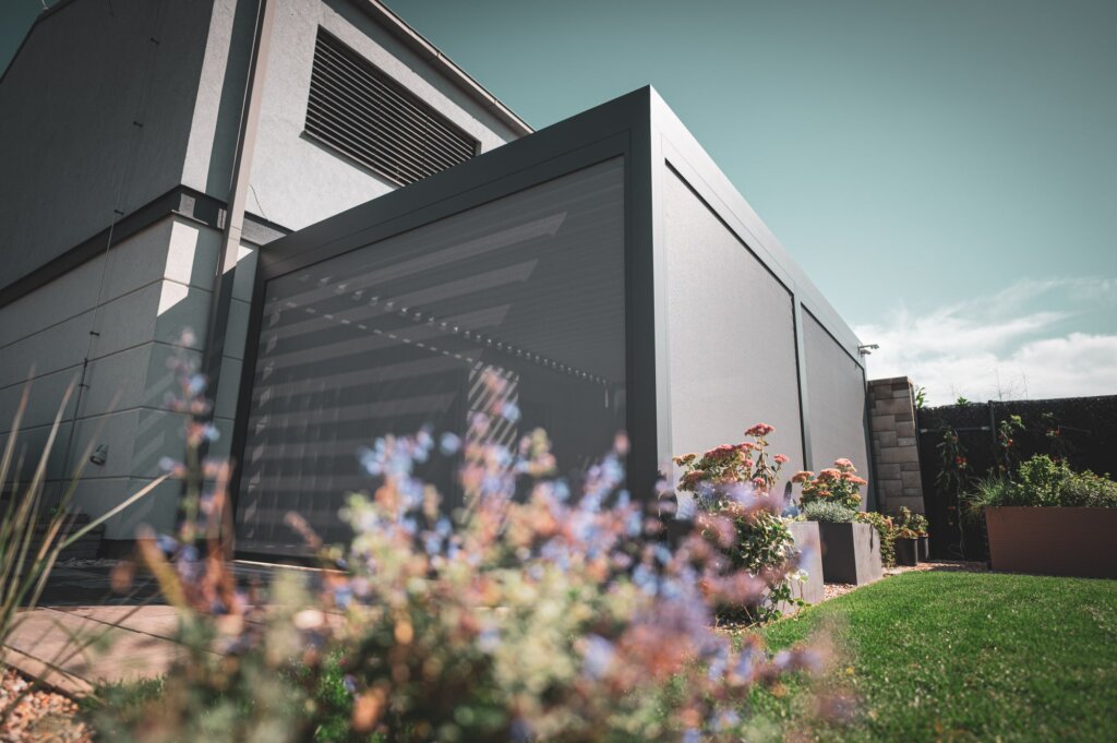 Screenové rolety si nemusíme dávať do súvislostí iba s oknami. Screenové clony sú vhodné pre zatienenie Vášho odpočinkového miesta, ako je napr. balkón, zimná záhrada, terasa, altánok, záhradný dom alebo pergola. Screenová tkanina nielen miesto príjemne zatieni, ale vďaka svojej priedušnosti vetrá a zároveň slúži ako ochrana pred hmyzom alebo nečistotami z okolia. Využiť ju tak môžete v sparnom dni alebo naopak pri nepriaznivom počasí, kedy prší alebo silne fúka. Clona elegantne uzavrie inak otvorený priestor pergoly a navodí príjemný pocit bezpečia. Vonkajšie posedenie tak bude podľa potreby kryté a vzdušné zároveň. Screenové clony vo voľnom priestore odporúčame inštalovať vo variante Zipscreen. Roleta je tak maximálne stabilná a odolná voči poveternostným vplyvom.