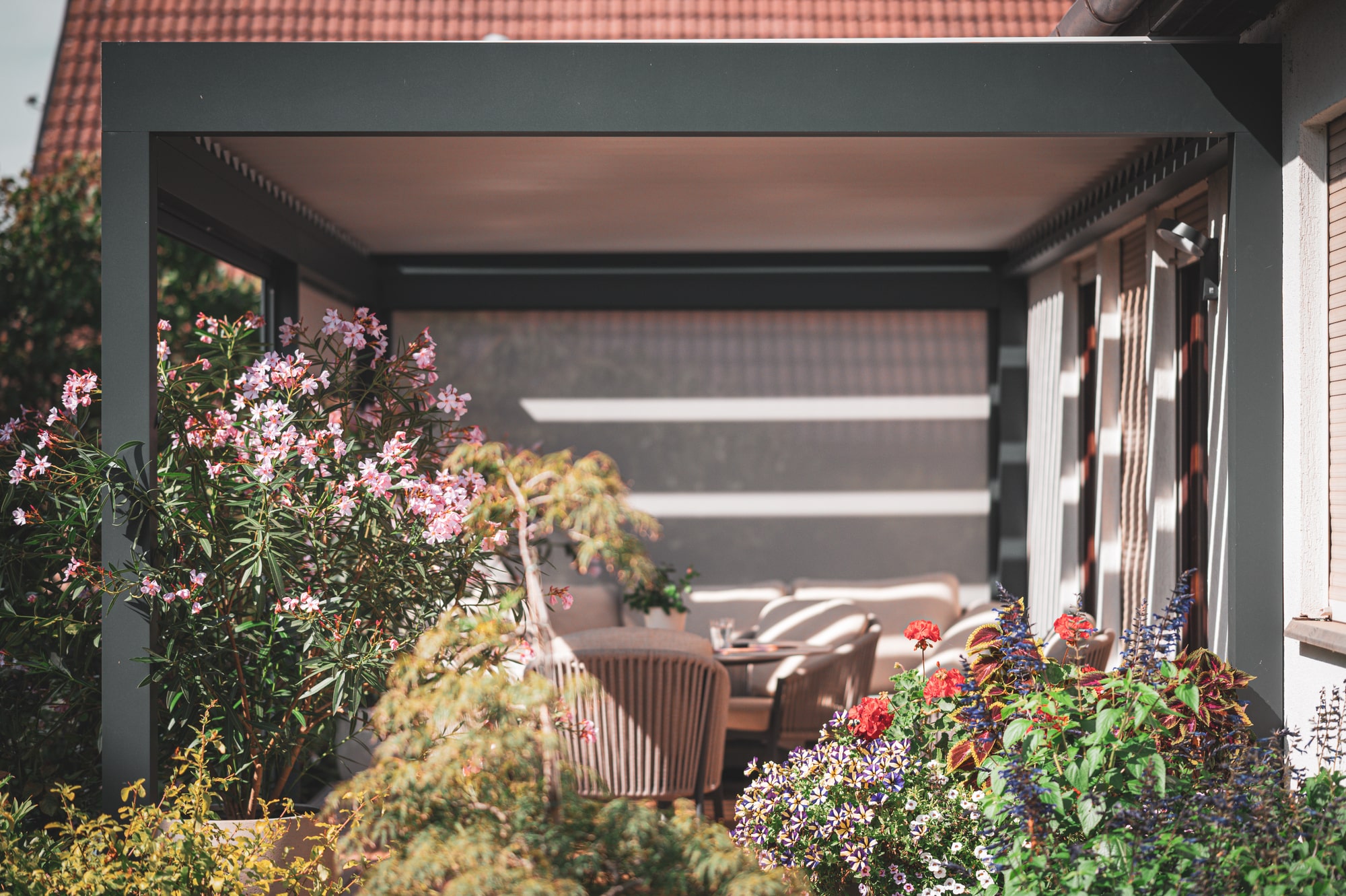Screenové rolety si nemusíme dávať do súvislostí iba s oknami. Screenové clony sú vhodné pre zatienenie Vášho odpočinkového miesta, ako je napr. balkón, zimná záhrada, terasa, altánok, záhradný dom alebo pergola. Screenová tkanina nielen miesto príjemne zatieni, ale vďaka svojej priedušnosti vetrá a zároveň slúži ako ochrana pred hmyzom alebo nečistotami z okolia. Využiť ju tak môžete v sparnom dni alebo naopak pri nepriaznivom počasí, kedy prší alebo silne fúka. Clona elegantne uzavrie inak otvorený priestor pergoly a navodí príjemný pocit bezpečia. Vonkajšie posedenie tak bude podľa potreby kryté a vzdušné zároveň. Screenové clony vo voľnom priestore odporúčame inštalovať vo variante Zipscreen. Roleta je tak maximálne stabilná a odolná voči poveternostným vplyvom.