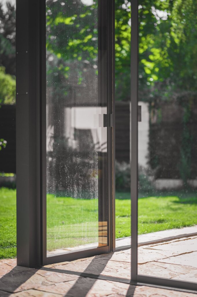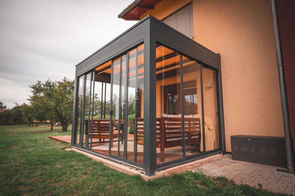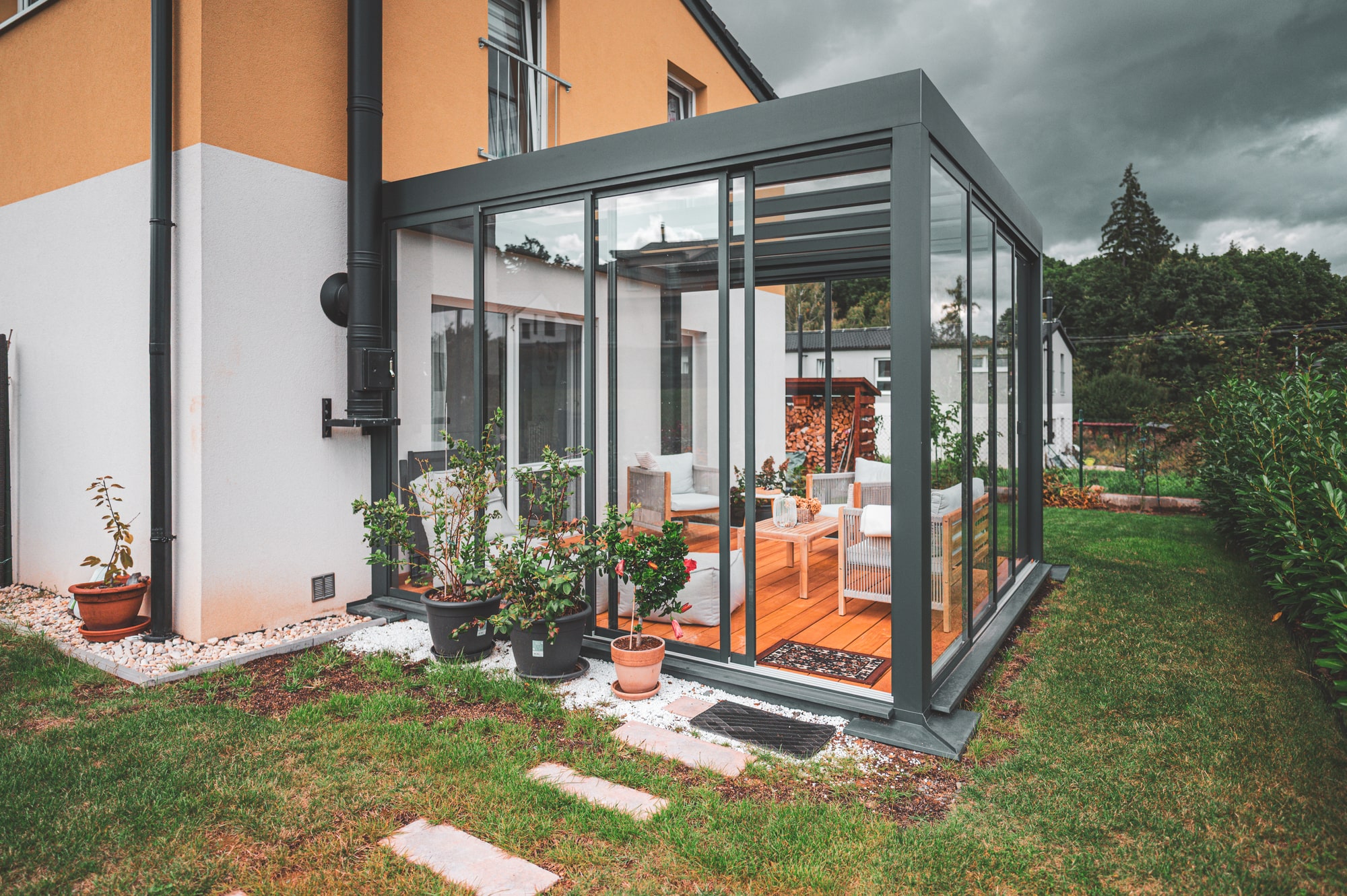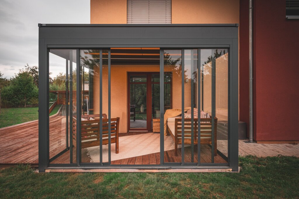 Bezrámové zasklenie tvorí sklenené tabule bez deliacich zvislých rámov s transparentným medzisklenným tesnením a vytvára tak dojem celopresklenej plochy. Krídla z číreho bezpečnostného skla sú zaistené vždy na hornej a spodnej časti dielci, ktoré umožňujú posun krídiel po vodiacich koľajniciach. Systém otvárania je posuvný. Príjemné ovládanie celého systému umožňujú malé madlá na na sklenenom krídle.